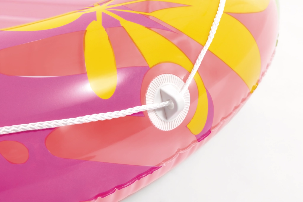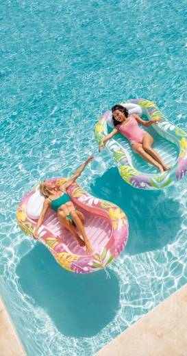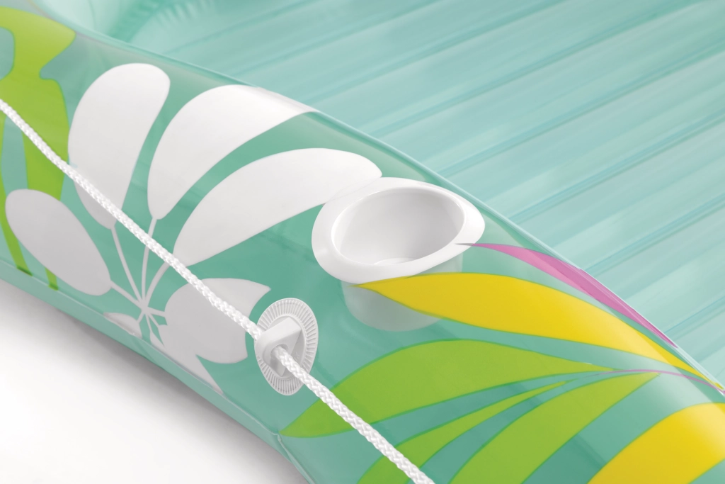Apportez une touche de fraîcheur à la piscine avec un imprimé vitaminé. Le porte-boisson latéral et la corde de prise périmétrique facilitent la manipulation et la détente.