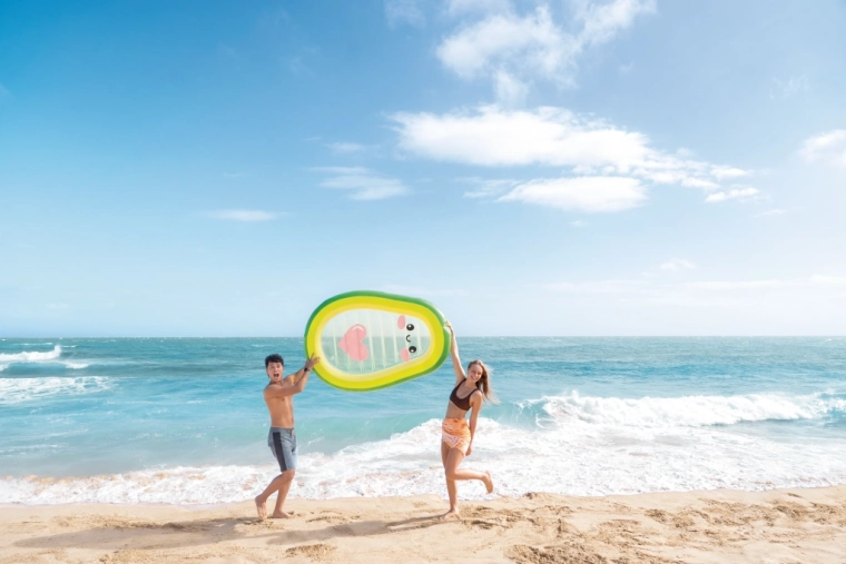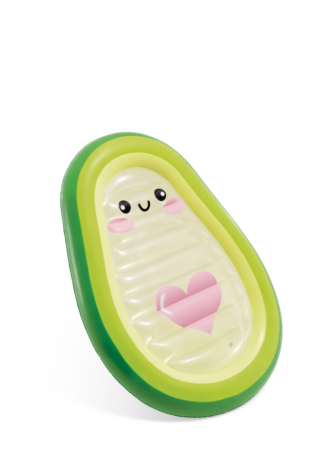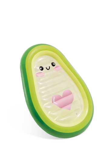 Profitez pleinement de l’été avec ce matelas ludique en forme d’avocat, doté d’un centre transparent avec un visage mignon et un cœur rose. Conçu en PVC résistant, il possède deux valves pour un gonflage et un dégonflage rapides, et offre à la fois un couchage confortable et une excellente stabilité sur l’eau. Idéal pour la piscine, la plage et les vacances – pour adultes et grands enfants. Découvrez l’alliance du design stylé, du confort et de la diversion aquatique.