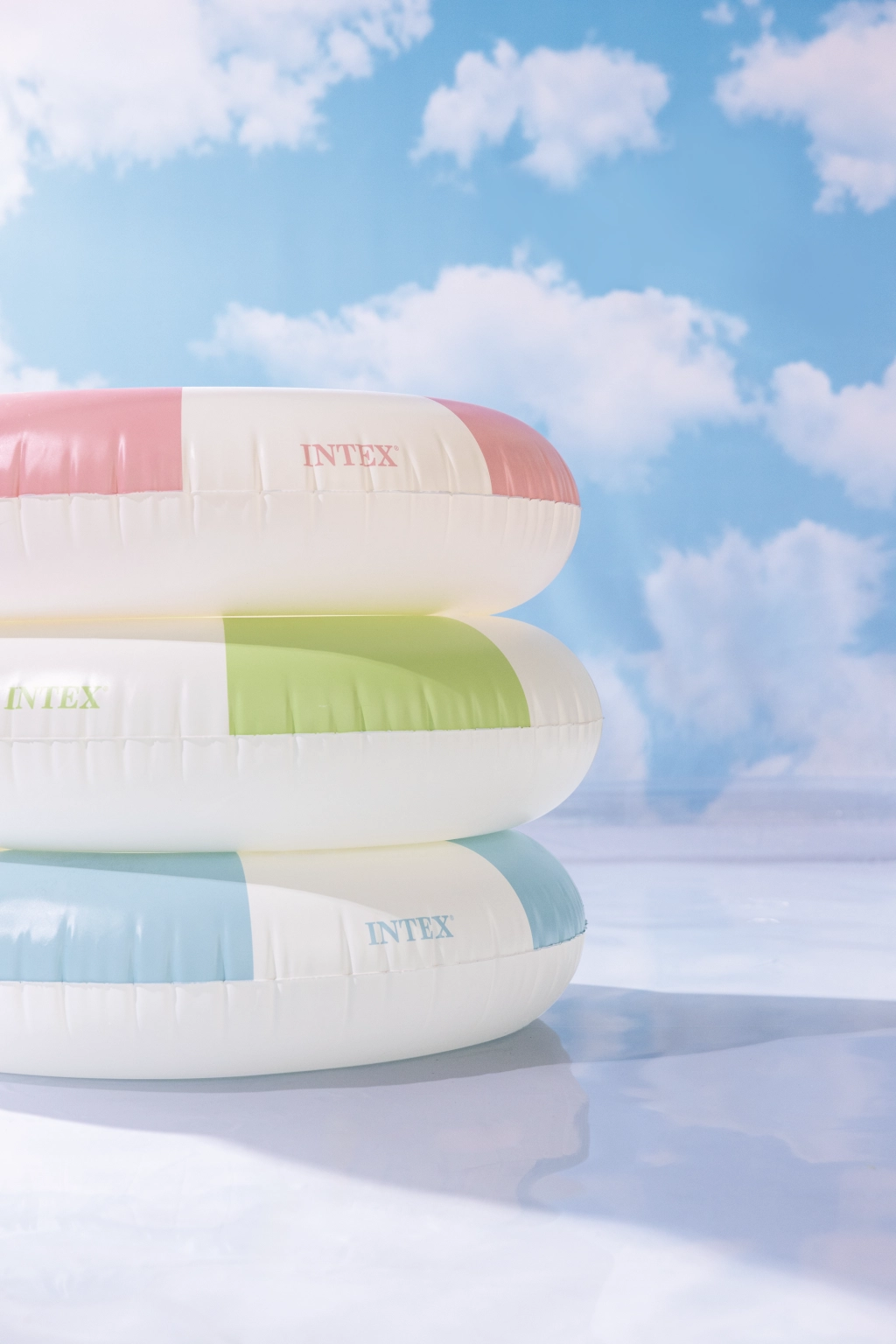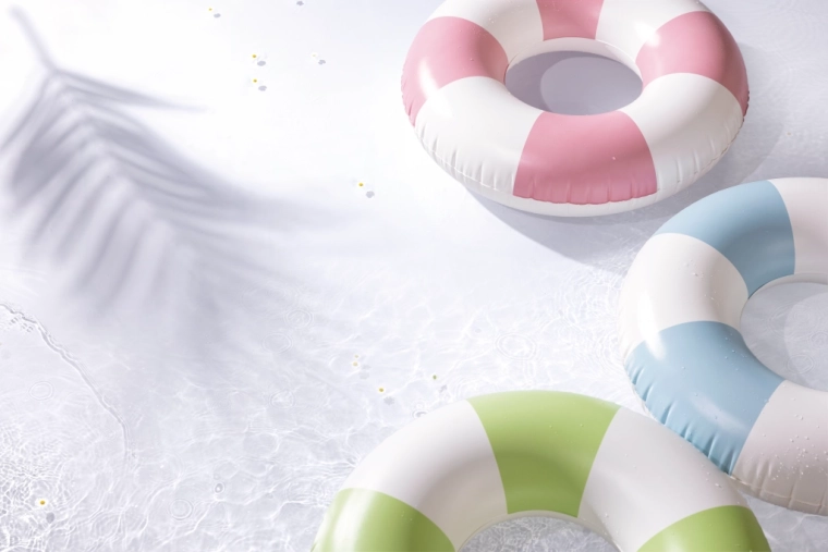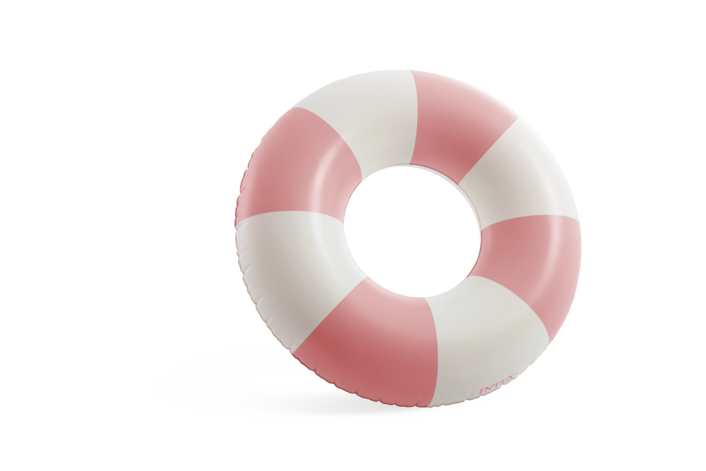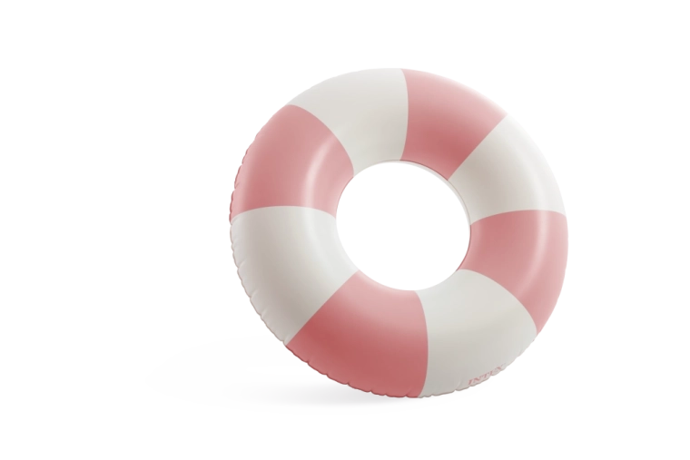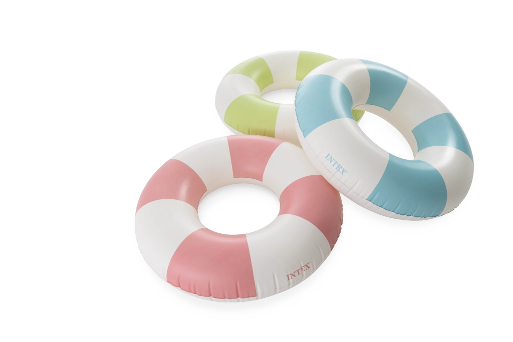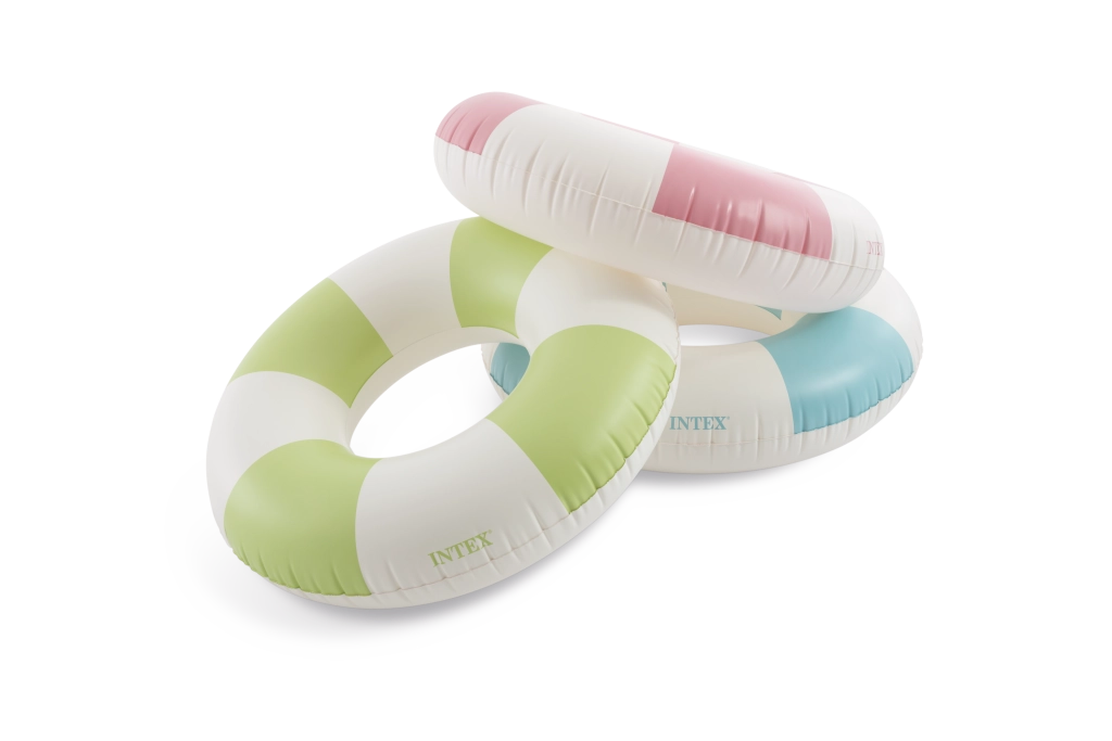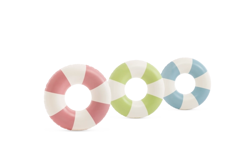 La combinaison tendance de rose, bleu et vert avec des segments blancs est non seulement esthétique, mais améliore aussi la visibilité de la bouée dans l’eau.