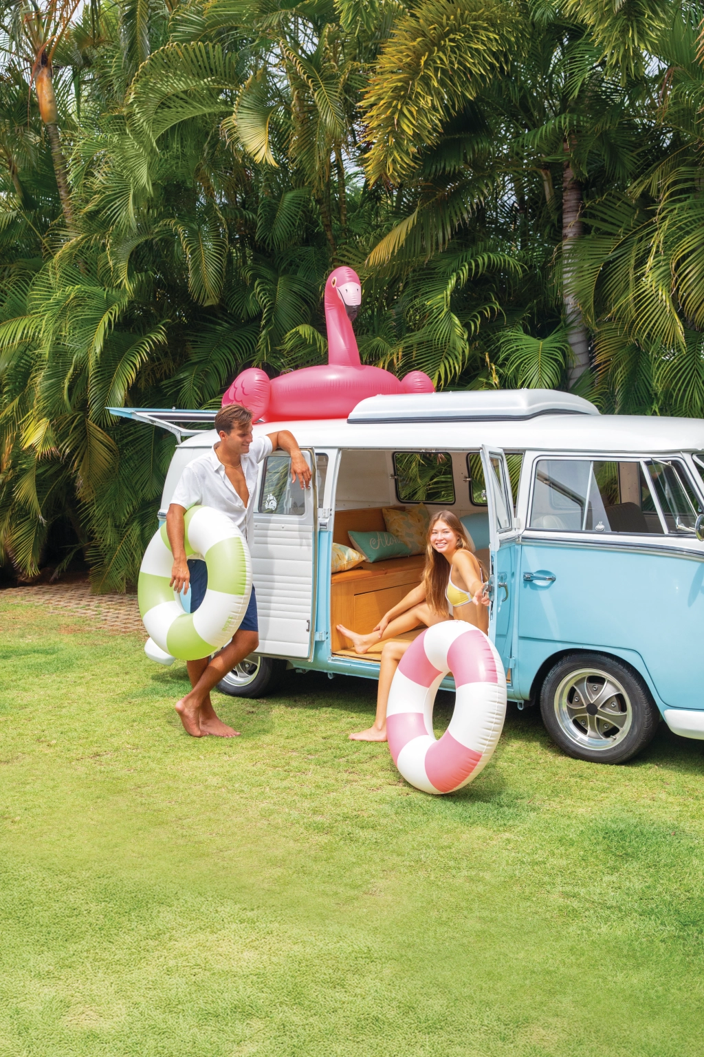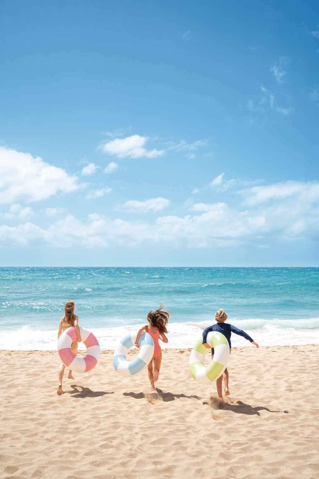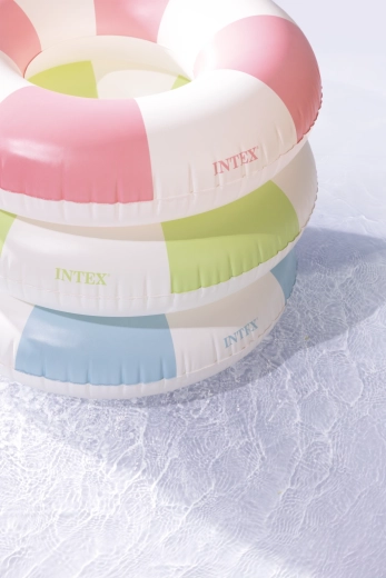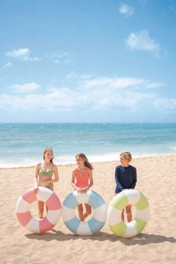 La bouée gonflable Coastal Cabana associe un design frais aux tons pastel bleu, vert et rose à des fonctionnalités pratiques pour des moments aquatiques sûrs et confortables. Grâce à son diamètre de 91 cm, elle offre suffisamment d’espace et de confort, aussi bien pour la piscine que pour la mer.