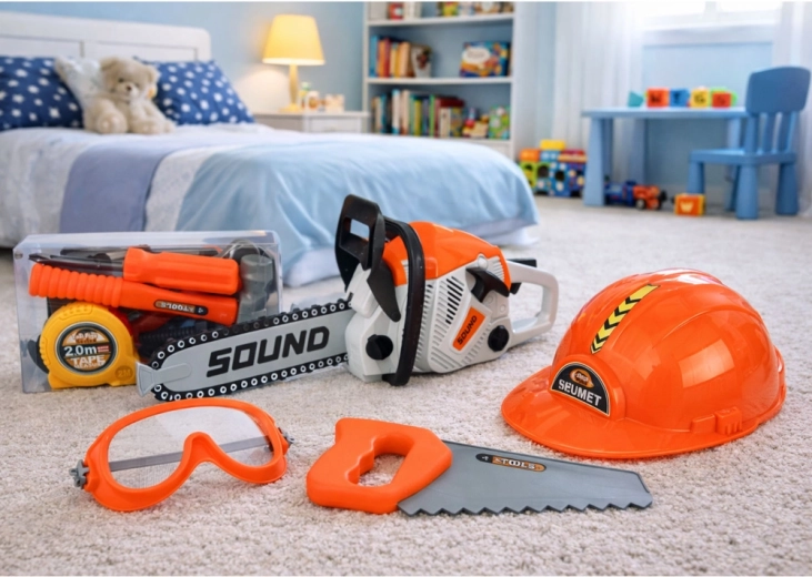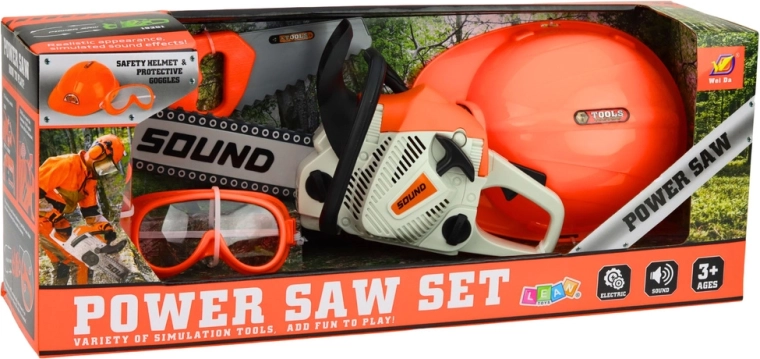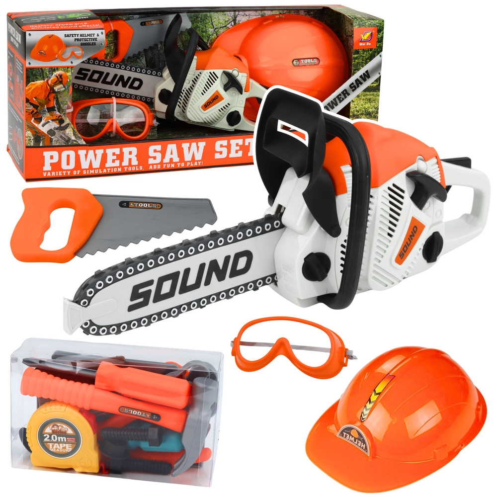 Set d’outils pour enfants avec tronçonneuse, casque et lunettes avec sons