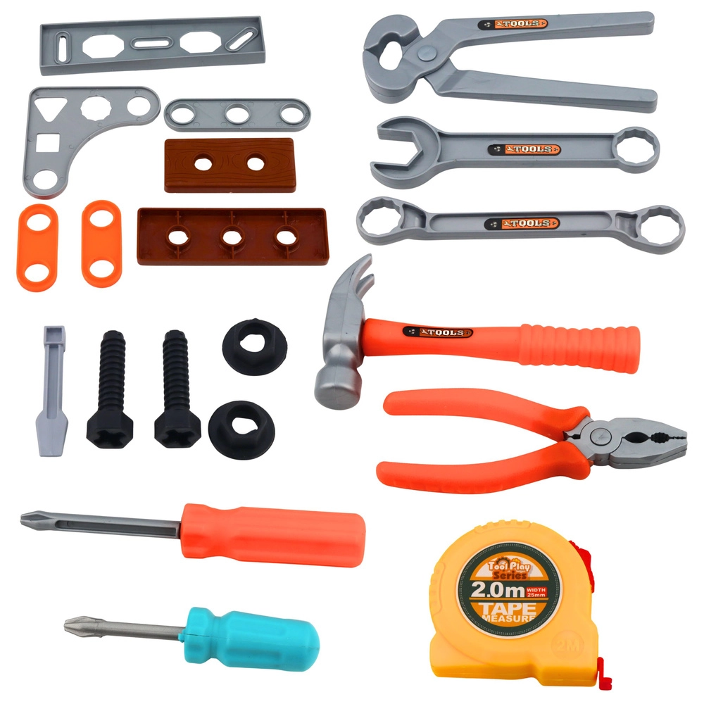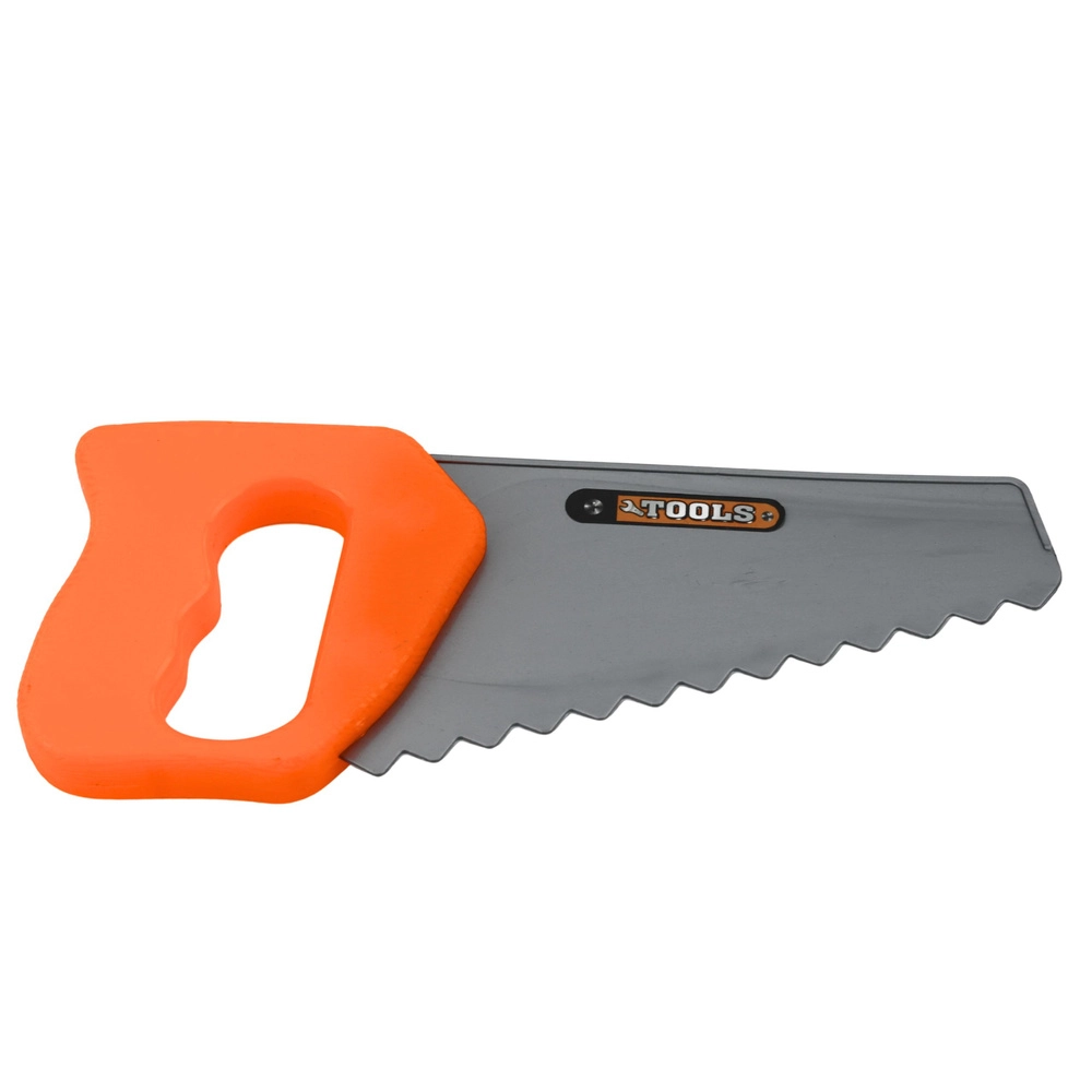 Scie manuelle, marteau, tournevis, clés et réglette élargissent les possibilités de jeu et développent la motricité fine.
