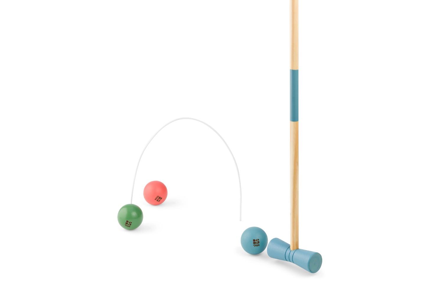 Les boules et les extrémités des maillets sont codées par couleur, ce qui facilite la répartition des joueurs en équipes et la clarté pendant la partie.