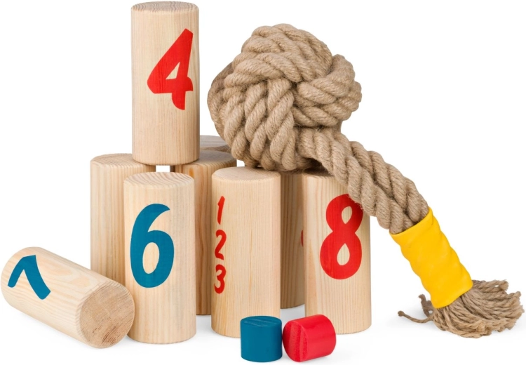Knapsack est un jeu d’adresse en plein air captivant où précision et tactique décident de la victoire. Les joueurs lancent à tour de rôle un nœud vers des quilles en bois numérotées et choisissent soigneusement leur cible afin de marquer les bons points. Des manches rapides, des règles simples et des retournements surprenants garantissent du plaisir pour toute la famille.