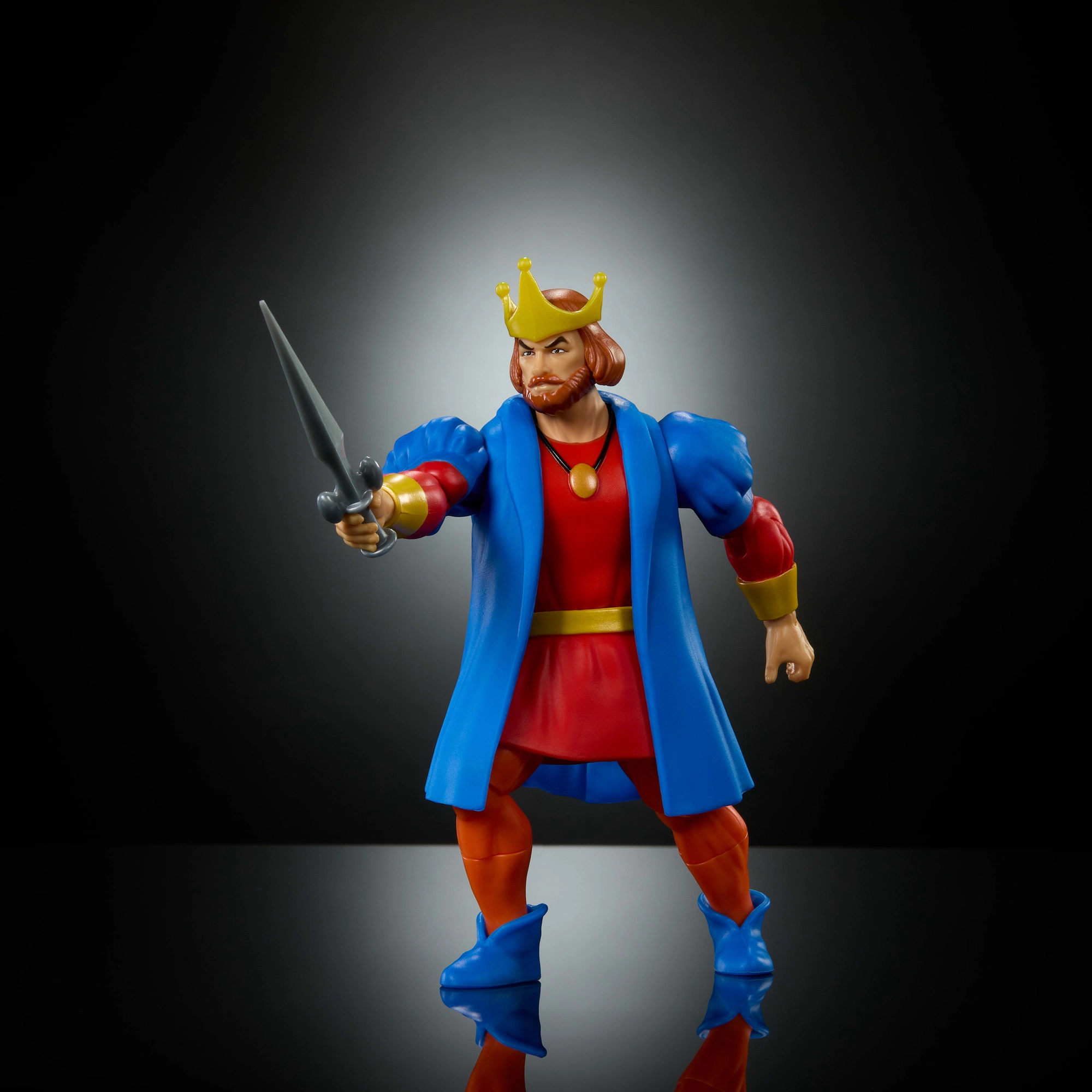 Grâce à 16 points d’articulation et à des pièces interchangeables, vous pouvez placer le roi dans des poses d’action, héroïques ou de collection. L’épée et le sceptre inspirés de la série sont accompagnés d’un mini-comics qui enrichit l’histoire et ravira petits et grands fans.