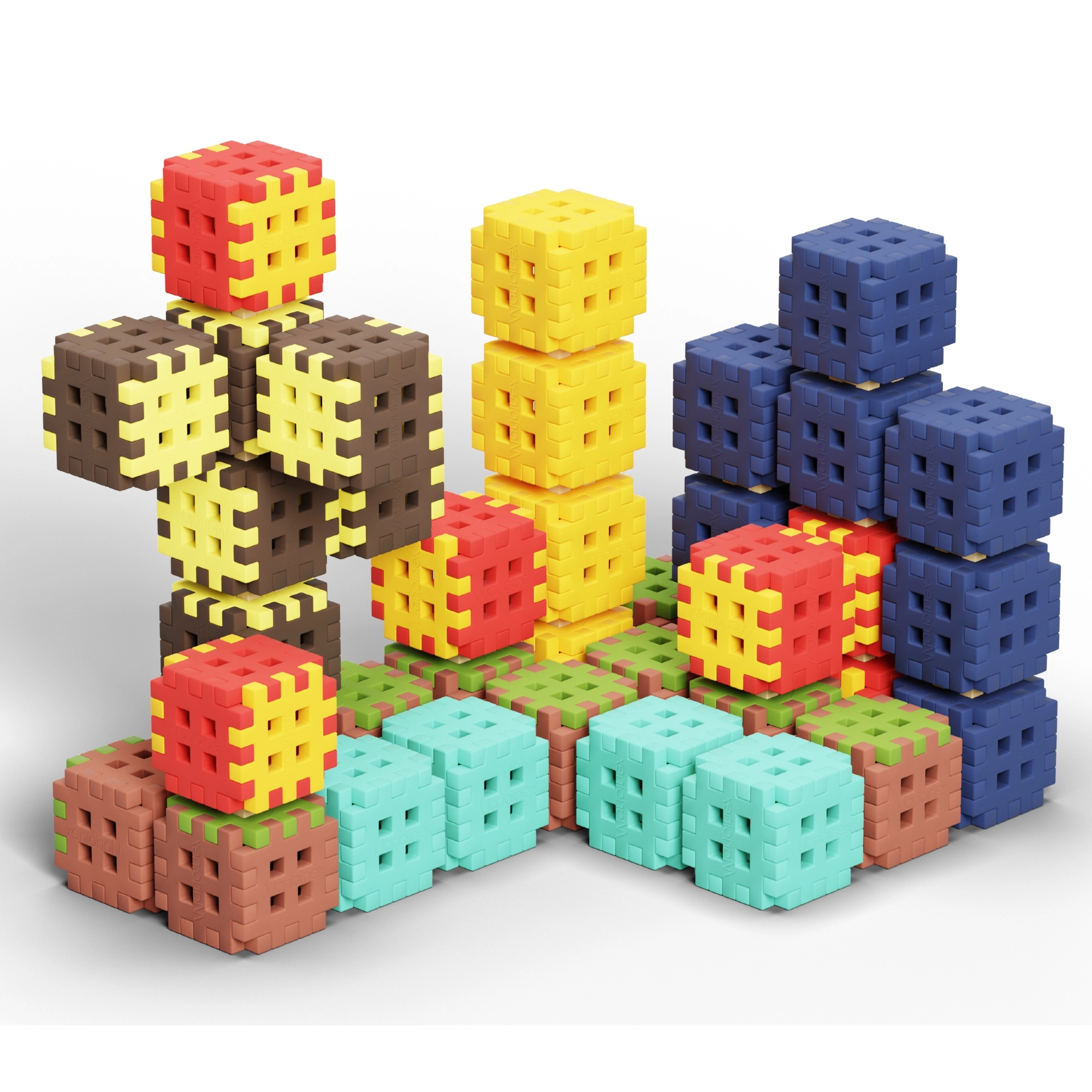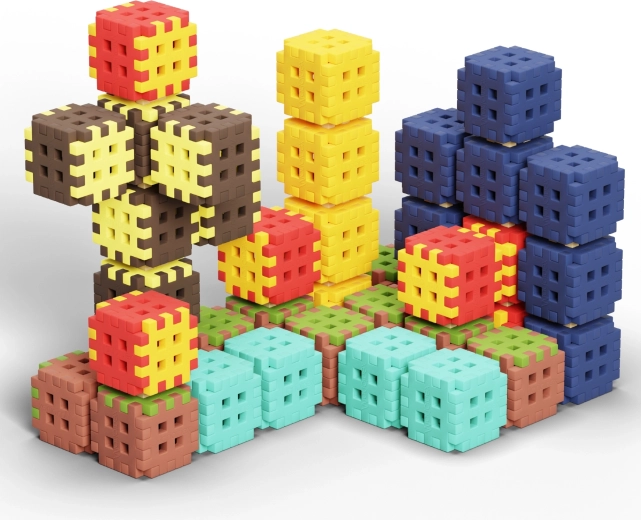 Découvrez la liberté de construire avec une riche palette de couleurs – du vert « herbe » aux bleus « minéraux » jusqu’à la « lave » ou « l’eau ». Grâce à 74 connecteurs robustes, vous érigez facilement des constructions hautes et stables que vous pouvez remodeler et étendre à tout moment. Les briques souples, légères et agréables s’assemblent et se séparent aisément, permettant aux enfants de jouer en autonomie et longtemps.