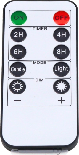 Allumez, éteignez, tamisez et réglez le minuteur (2/4/6/8 h) avec une seule télécommande – sans avoir à manipuler les bougies.