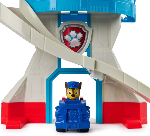 - Design iconique Paw Patrol – tour avec insigne de patte et organisation à plusieurs niveaux.