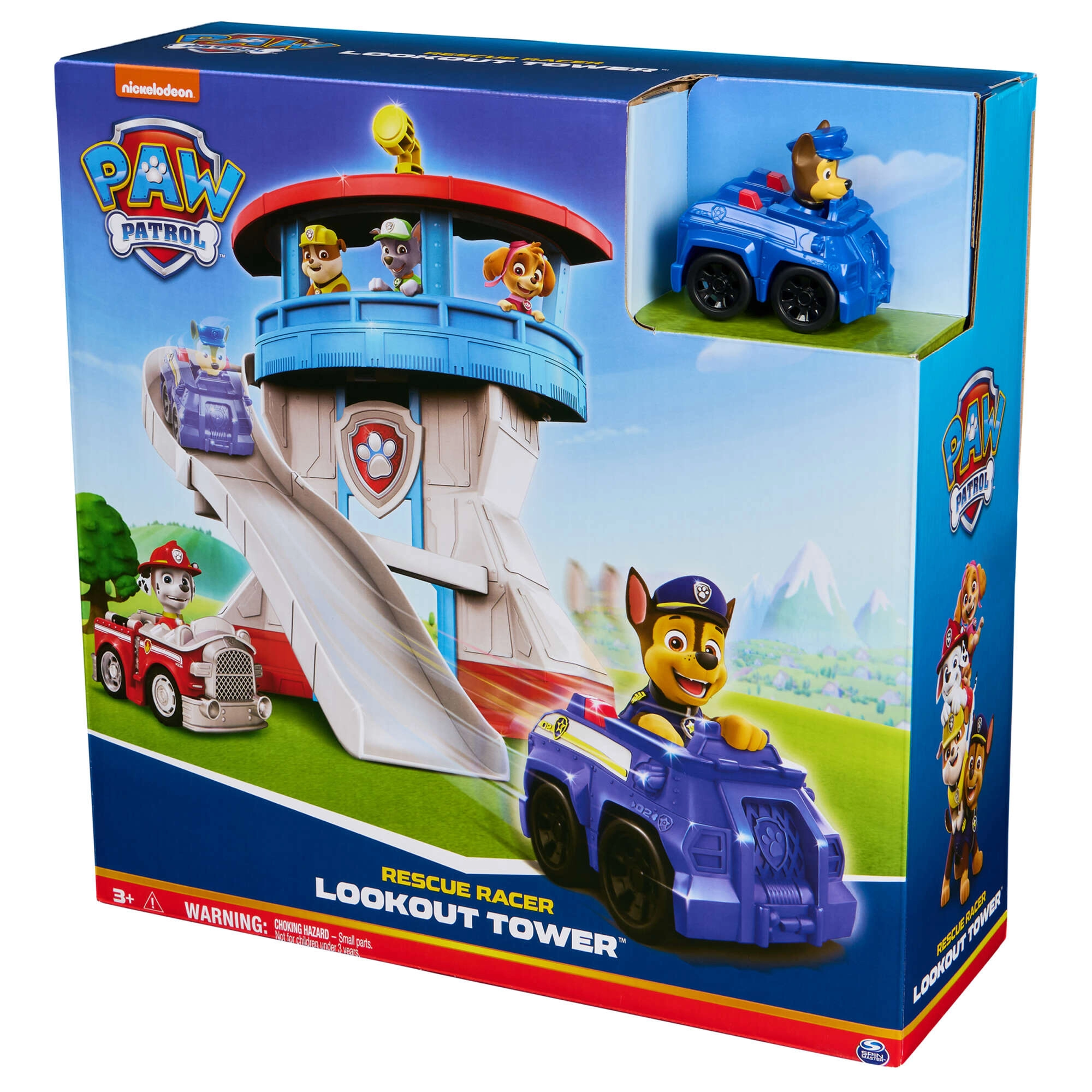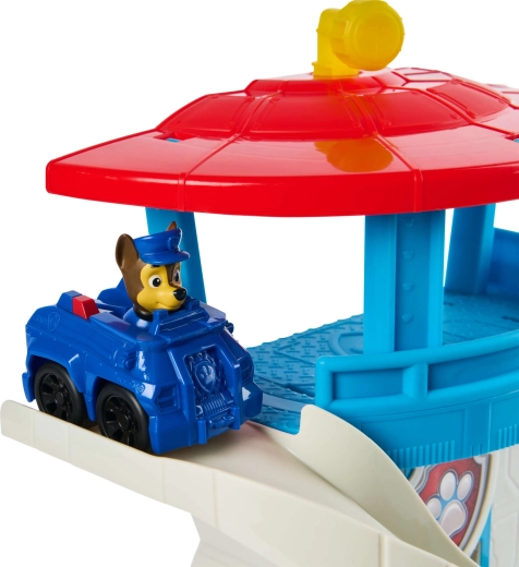Ce set de jeu coloré inspiré de la série Paw Patrol offre aux enfants une base réaliste pour leurs scénarios de sauvetage. La tour est ornée de l’iconique insigne de patte et comporte en haut un périscope jaune rotatif avec lequel Chase peut surveiller les environs. Le set comprend également une petite voiture bleue avec la figurine de Chase – prête pour une descente rapide sur le toboggan incurvé.