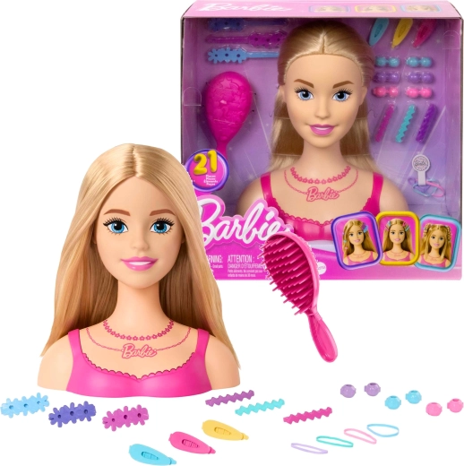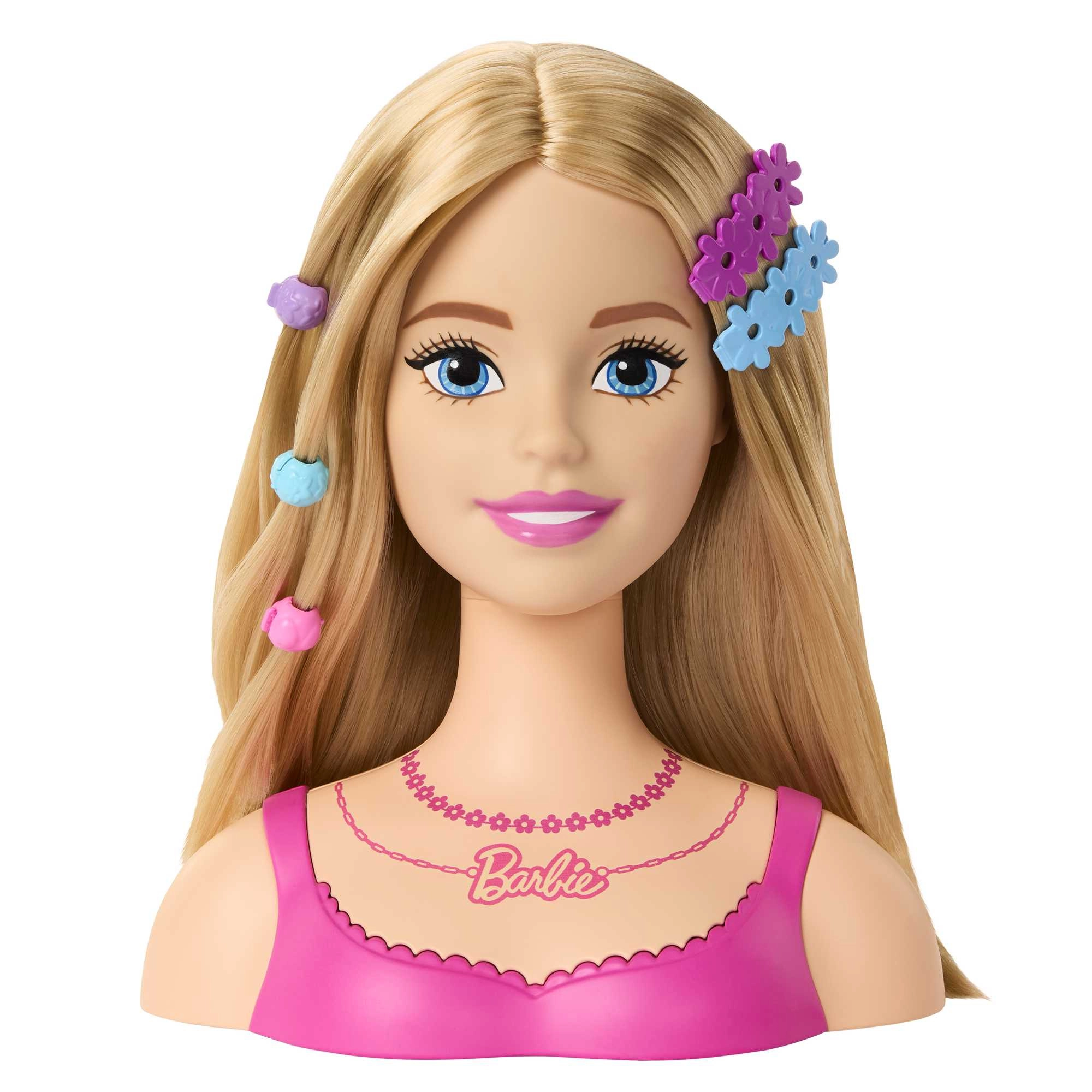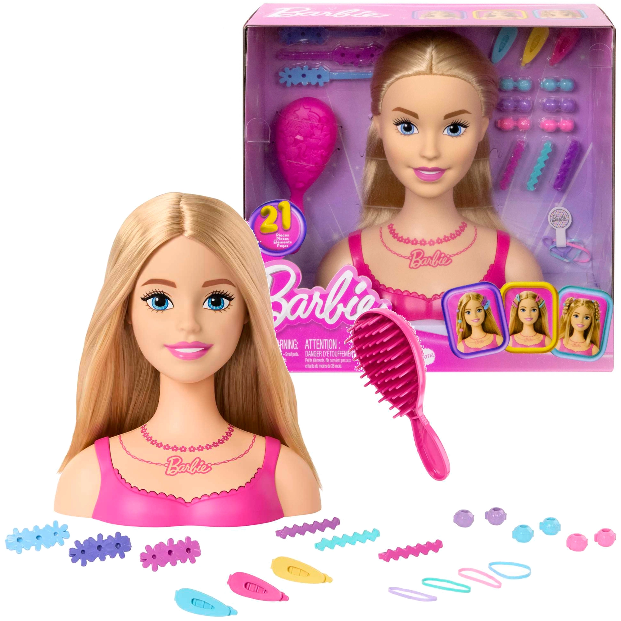 - Tête de styling Barbie, brosse, 9 pinces (classiques, zigzag et fleuries), 6 perles pour cheveux, 4 élastiques