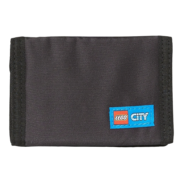 Pratique portefeuille pour enfant avec motif LEGO CITY, doté d’une fermeture velcro sécurisée, de compartiments clairs pour billets, pièces et cartes, et d’une construction textile 600D résistante pour un usage quotidien.