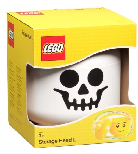 L’impression squelette unique et la forme de tête de minifigurine transforment le rangement en jeu et complètent à merveille toute chambre d’enfant ou coin de jeu.