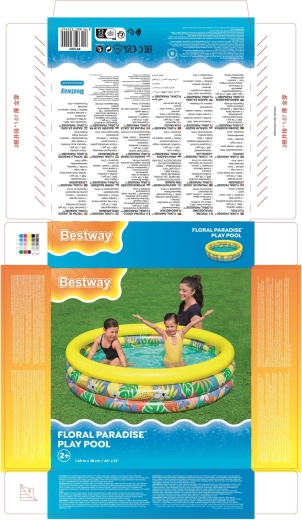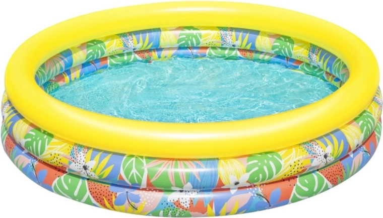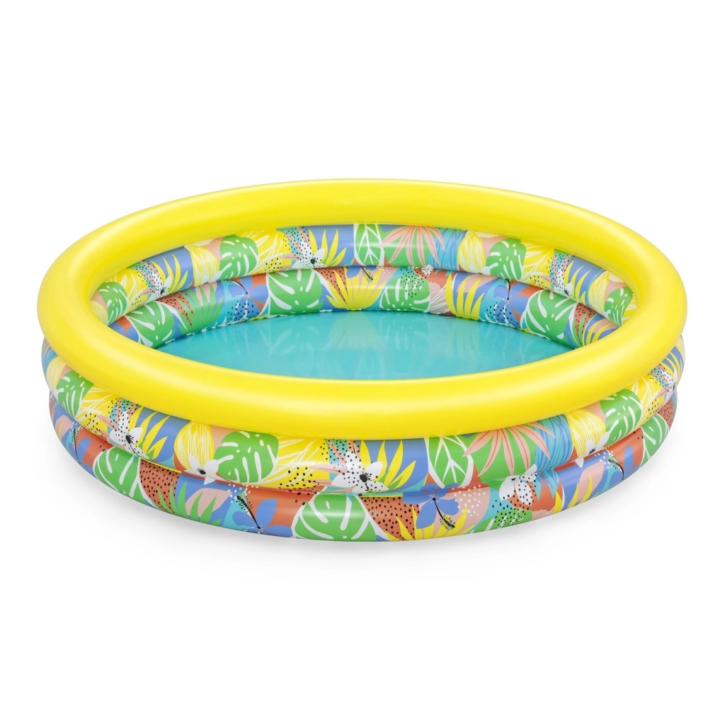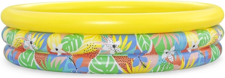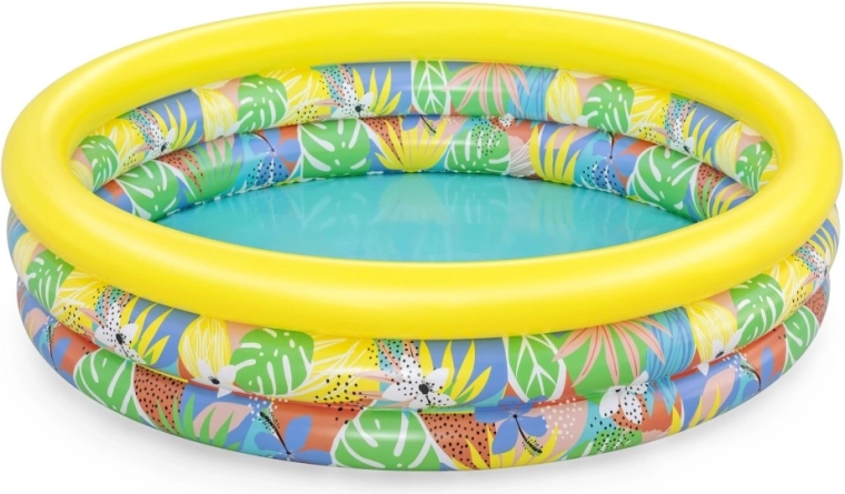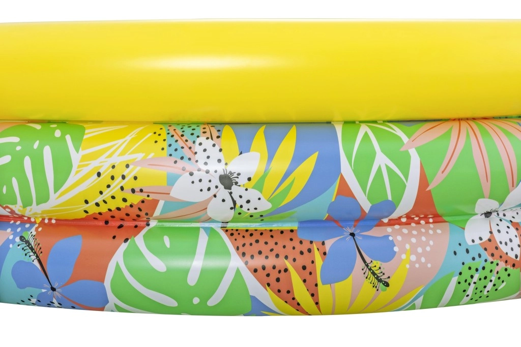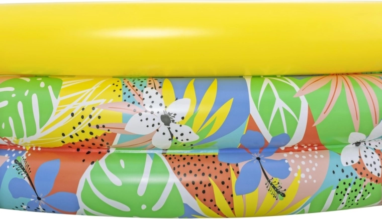 La piscine gonflable pour enfants Floral Paradise apporte amusement et fraîcheur pendant les journées chaudes. Les trois chambres à air indépendantes avec valves de sécurité améliorent la stabilité et le confort, tandis que le PVC robuste résiste à un usage quotidien. L’imprimé tropical de feuilles et de fleurs, associé à un anneau supérieur jaune vif, crée une ambiance de vacances dans votre jardin.