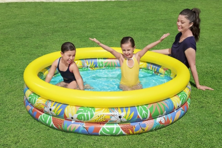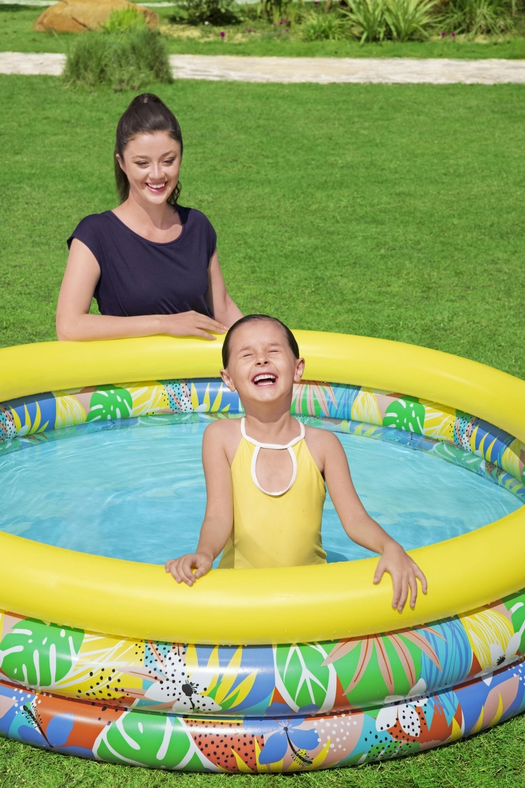 Illuminez l’été avec la piscine gonflable Floral Paradise pour enfants dès 2 ans. Sa structure à trois anneaux gonflables stables, ses valves de sécurité et son PVC résistant garantissent des jeux d’eau en toute sécurité. Grâce à l’installation rapide, à ses dimensions compactes une fois dégonflée et à son joyeux design tropical, elle est idéale pour tout jardin.