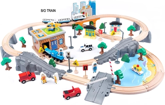 Découvrez le plaisir et l’apprentissage réunis avec ce circuit de train en bois à piles de 95 pièces, idéal pour les enfants à partir de 3 ans. La locomotive électrique alimentée par pile AA circule de façon réaliste sur les rails, les attelages magnétiques permettent de raccorder facilement les wagons et les nombreux accessoires comme ponts, arbres, bâtiments et panneaux de signalisation stimulent l’imagination et le développement de la motricité. Fabriqué en bois de qualité avec des peintures écologiques, il répond aux normes CE et EN 71 pour un jeu en toute sécurité.