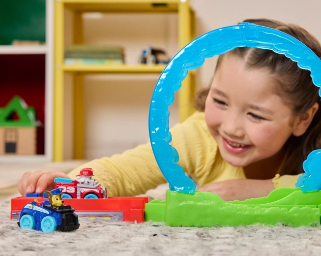 Laissez les enfants partir en mission héroïque avec les chiots préférés de PAW Patrol. Placez la voiture dans le lanceur, tirez le levier et regardez-la traverser la boucle transparente, éviter l’obstacle en flammes et foncer vers l’arrivée. La construction en plastique robuste, les couleurs vives et la manipulation simple garantissent des heures de jeu en toute sécurité.