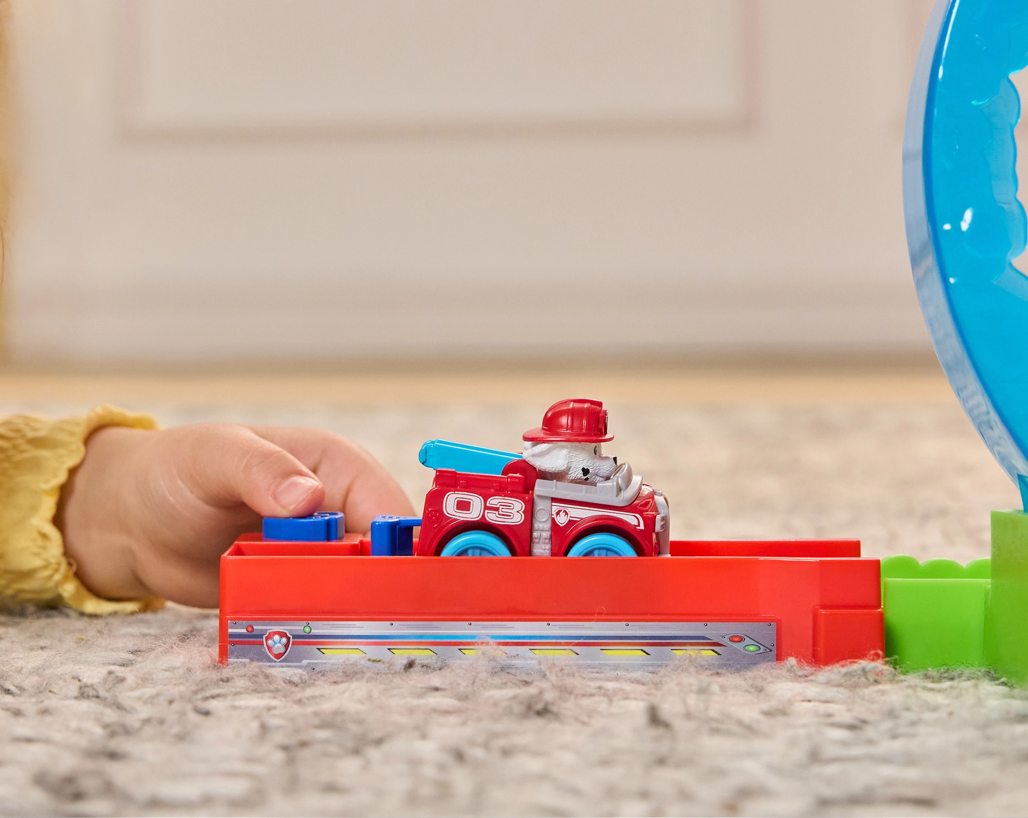 Les enfants peuvent “éteindre” symboliquement les flammes rabattables et créer leurs propres scénarios de sauvetage inspirés de la série PAW Patrol.