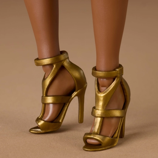 Le style est décliné dans des tons neutres et intemporels avec des accents dorés – une robe dorée scintillante accompagnée d’un maquillage discret et de détails raffinés. La poupée est compatible avec les accessoires BARBIE et s’intègre parfaitement aux tenues créatives et au mix & match.