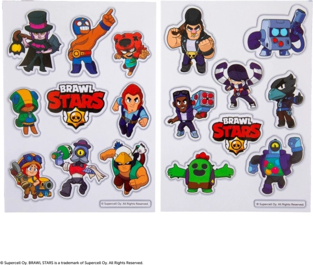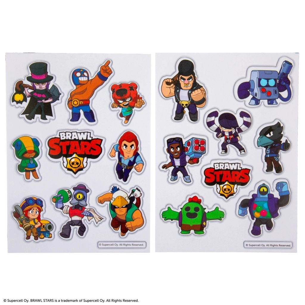 Illuminez vos affaires avec des autocollants stylés du jeu BRAWL STARS ! Ce lot comprend 2 planches d’autocollants PVC de qualité avec un effet 3D qui donne un aspect relief aux personnages. Les autocollants ont des couleurs vives, sont résistants, faciles à nettoyer et se posent aisément sur cahiers, téléphones, ordinateurs portables et autres surfaces lisses.