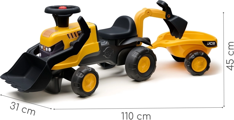 Découvrez le porteur tracteur JCB, qui allie fonctionnalité ludique et approche durable. Grâce à sa construction robuste et sa qualité de fabrication Made in France, il résiste aux aventures quotidiennes des enfants les plus audacieux. Les roues en élastomère, très silencieuses, garantissent une conduite fluide et discrète à la maison, tandis que les formes sûres et le centre de gravité bas soutiennent l’équilibre et la confiance pendant la conduite.