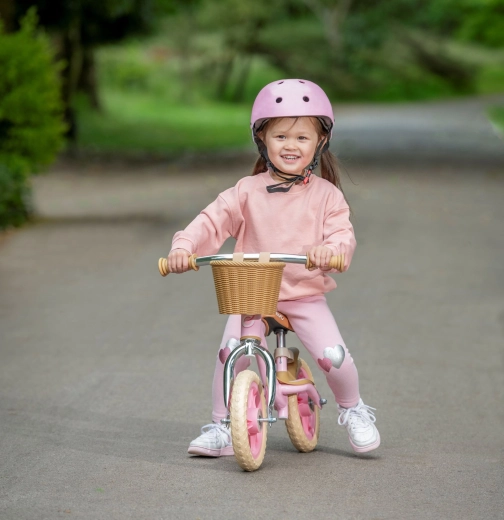 Un panier avant pour les petits trésors et un repose-pieds pour poser confortablement les pieds lors du « glide » favorisent à la fois le plaisir et l’entraînement de l’équilibre.