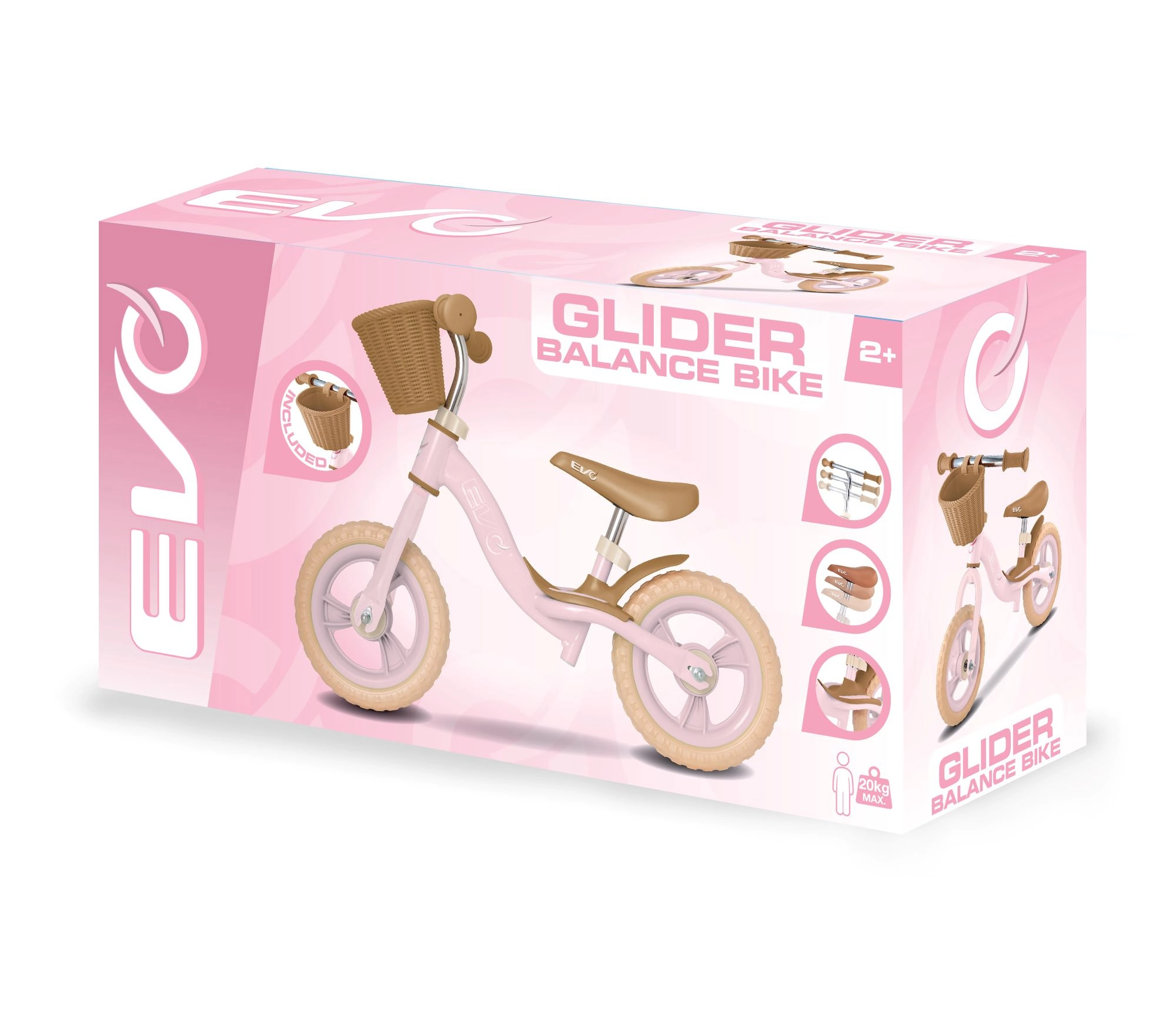 La draisienne pour enfants EVO Glider au style élégant est le premier vélo idéal pour les petits pilotes dès 2 ans. Grâce à son cadre léger, à la selle et au guidon réglables et à ses roues EVA 10" sans entretien, elle aide naturellement à développer l’équilibre et la coordination. Son panier avant accueille le jouet préféré et le repos-pieds intégré soutient l’entraînement de la stabilité en roulant.