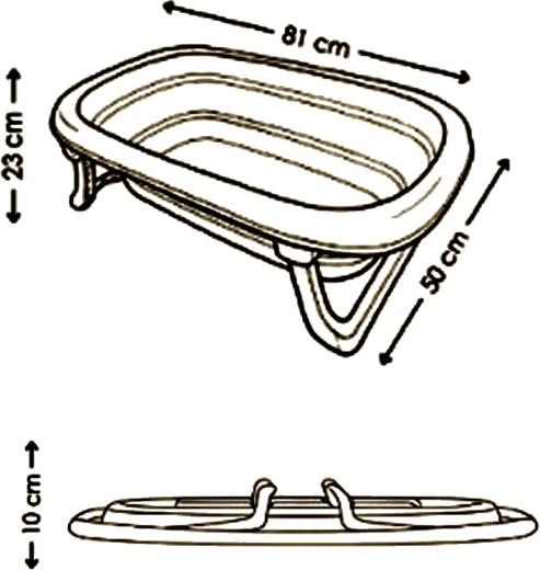 Conçue de manière ergonomique, la baignoire se plie facilement jusqu’à une hauteur d’environ 10 cm, ce qui permet de gagner de la place dans la salle de bain et à la maison. Les pieds en plastique stables se replient aisément sous la baignoire et garantissent un positionnement sûr et ferme pendant le bain.