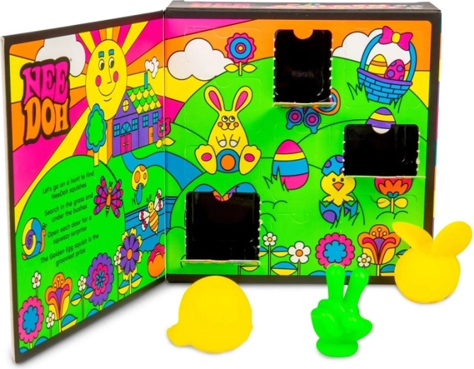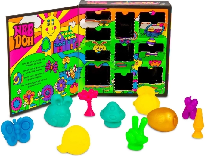 Apportez la magie de la chasse de Pâques à la maison. La boîte avec petites portes surprises renferme 10 mini surprises à presser Teenie NeeDoh – lapins, abeilles, fleurs et autres formes printanières. Elle inclut aussi un œuf d’or spécial, le trésor le plus rare du set. Chaque figurine est douce, extensible et agréable au toucher – parfaite à presser et à étirer comme anti-stress.
