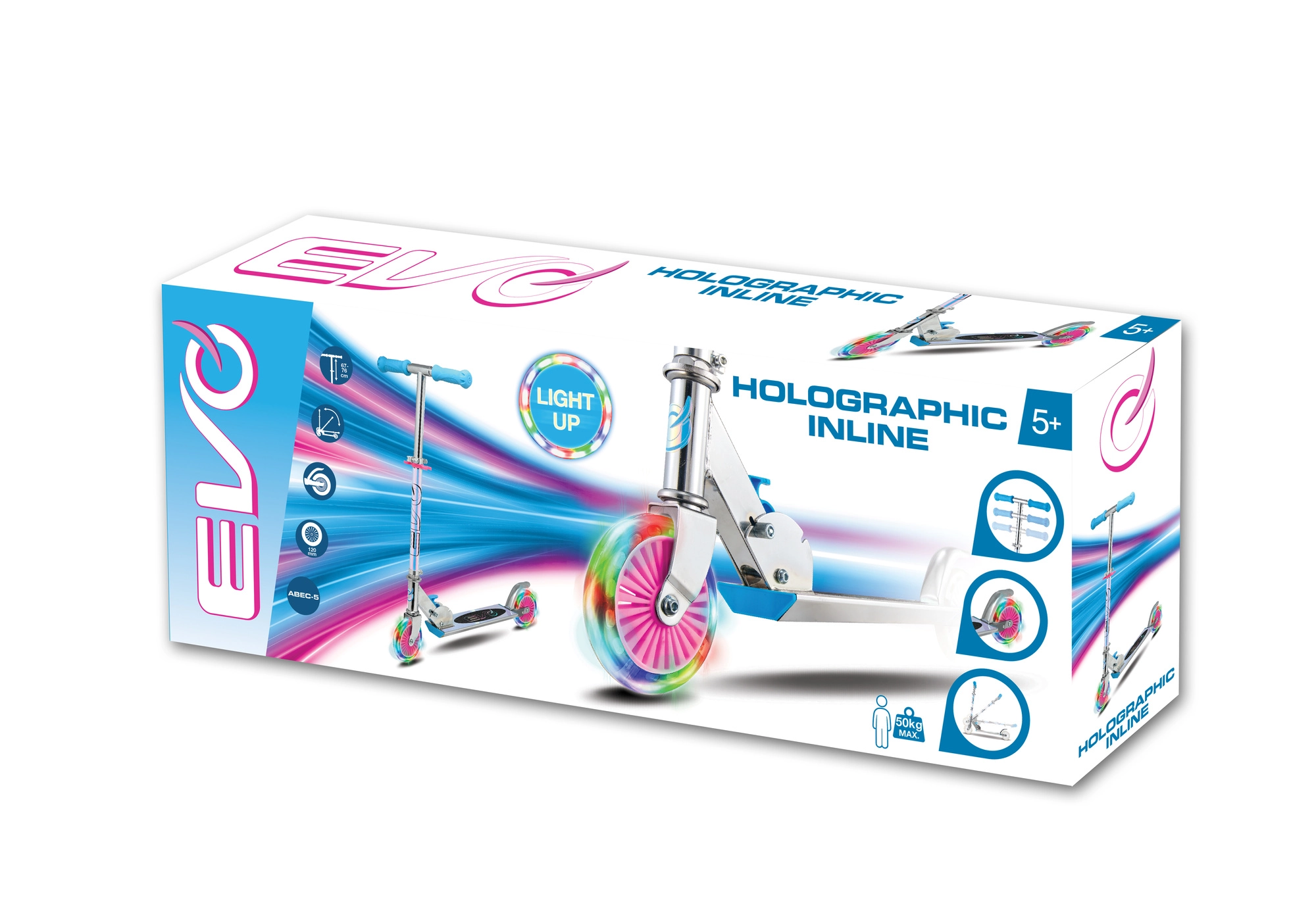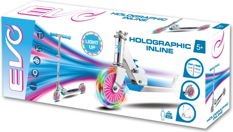 La trottinette EVO Holographic Inline allie plaisir et sécurité. Grâce aux roues LED lumineuses, chaque balade est plus fun, tandis que la hauteur de guidon réglable (env. 67–77 cm) s’adapte aisément à la croissance de l’enfant. La structure pliable facilite le transport et le rangement à la maison ou dans le coffre de la voiture.