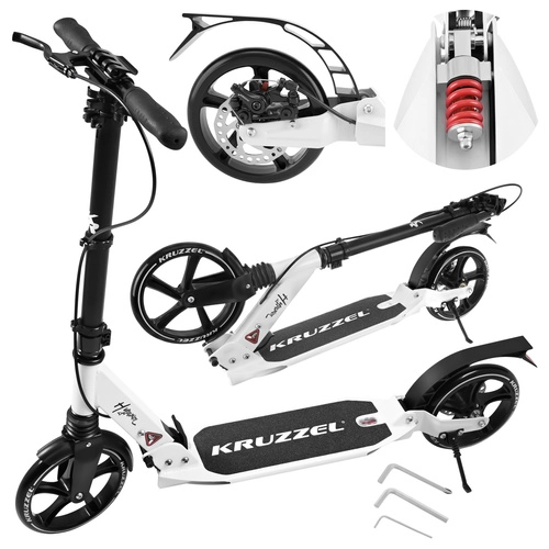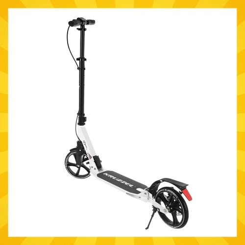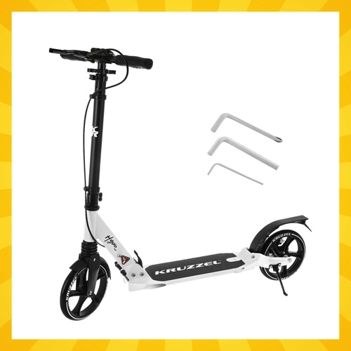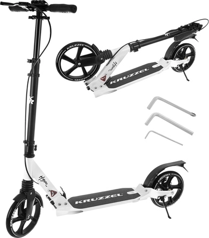 Découvrez une trottinette urbaine fiable qui allie confort, sécurité et portabilité. Le modèle KRUZZEL Hyperion dispose de roues en gomme de 200 mm pour une conduite stable sur les irrégularités, de roulements ABEC-9 de qualité pour un roulement fluide, et d’une suspension qui atténue les vibrations sur pavés comme sur asphalte.