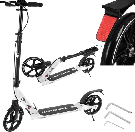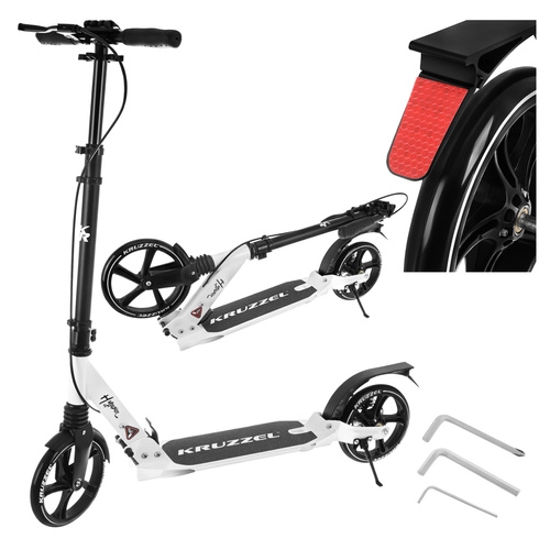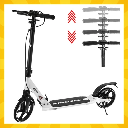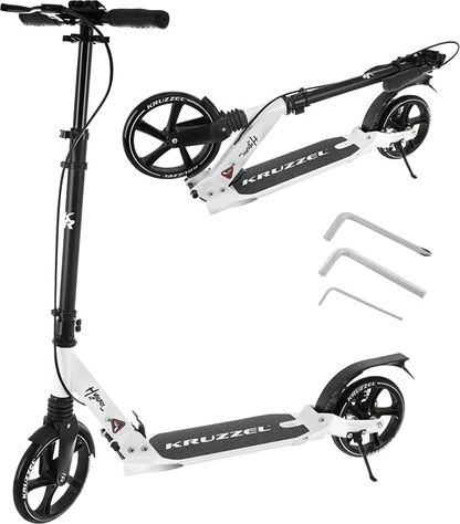La trottinette pliable premium KRUZZEL Hyperion pour enfants et adultes offre de grandes roues en gomme de 200 mm, des roulements ABEC-9, un système de freinage double (à main et au pied) et un cadre en aluminium léger. Grâce au pliage rapide, à la suspension et au guidon réglable en hauteur, elle est idéale pour des trajets confortables et sûrs sur trottoirs et pistes cyclables.