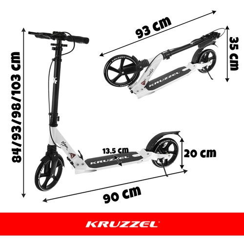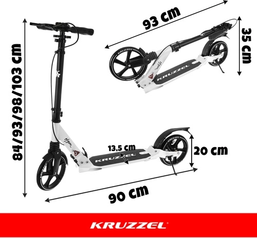 Trottinette urbaine pliable KRUZZEL Hyperion, roues 200 mm, suspension et guidon réglable en hauteur