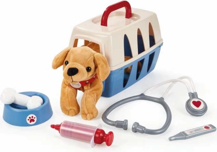 Le set comprend un chien, une gamelle, un os et des instruments médicaux de base – stéthoscope, thermomètre et seringue. Les dimensions compactes de la mallette garantissent un transport et un rangement faciles.