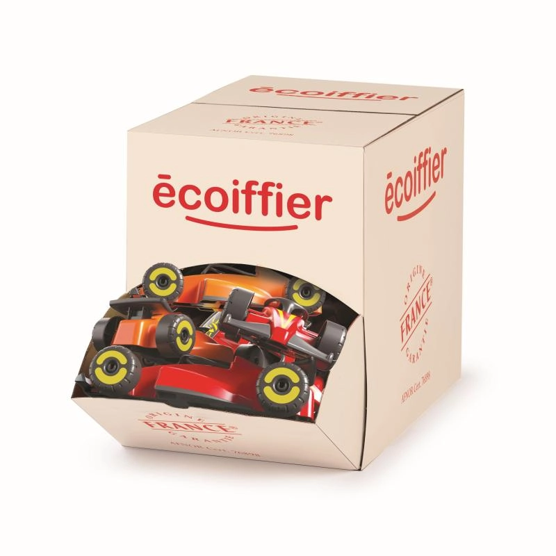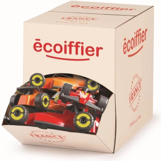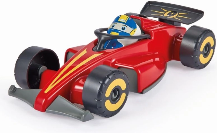 Le modèle est disponible en deux coloris (rouge et orange) avec un conducteur souriant dans le cockpit. Idéal comme première voiture de course pour la collection – facile à manier, légère et résistante aux chocs.
