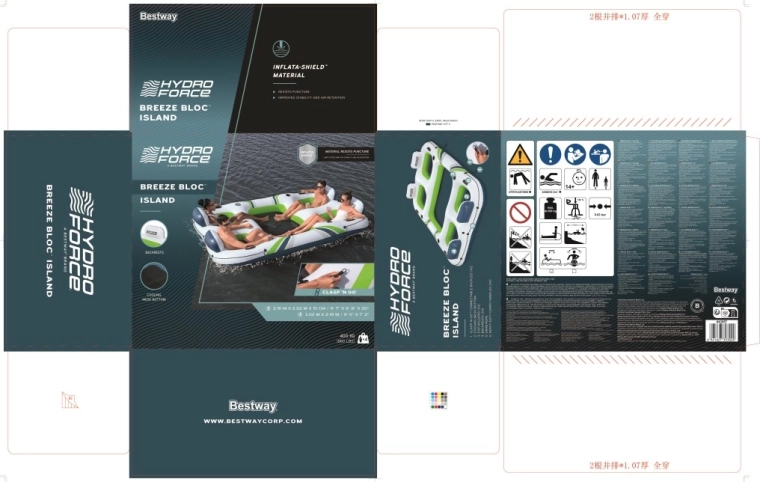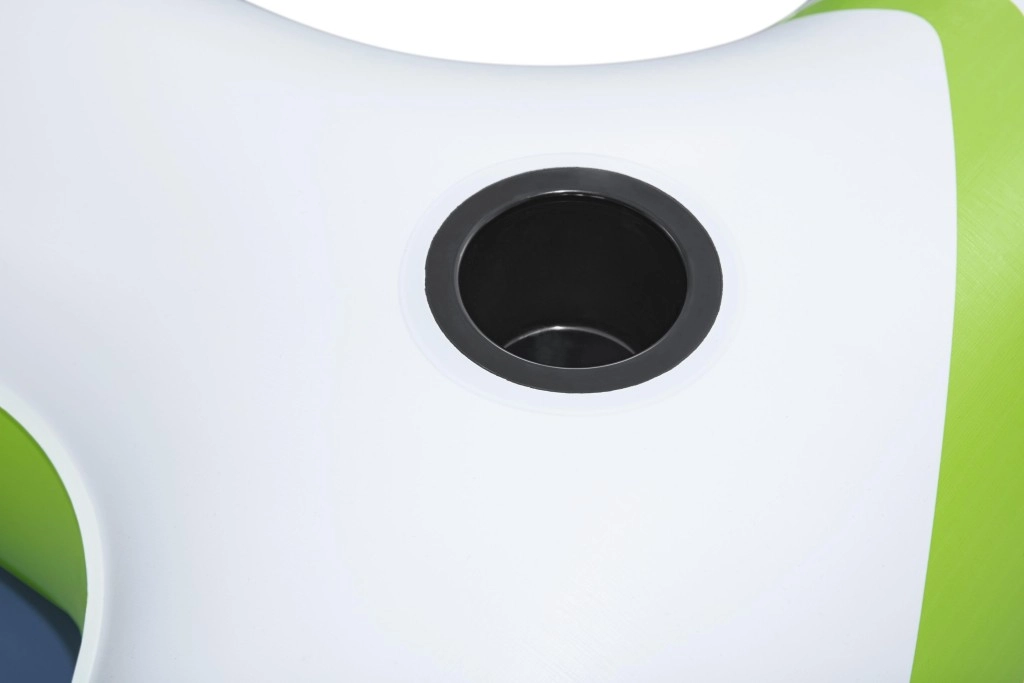 La surface résistante Inflata‑Shield™ minimise le risque de déchirure et augmente la rigidité de l’ensemble. Des valves à dégagement rapide accélèrent le gonflage et le dégonflage, tandis que quatre porte-gobelets intégrés gardent vos rafraîchissements toujours à portée de main. Deux connecteurs Clasp ’N Go™ permettent de relier l’île à d’autres bouées et de créer une plus grande zone de détente sur l’eau.