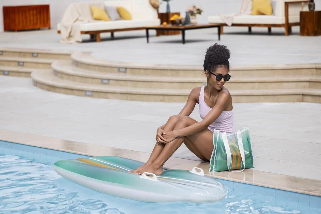Le set BESTWAY TAHITI allie praticité et style pour une détente parfaite au bord de l’eau. Le matelas au profil hydrodynamique et doté de deux poignées intégrées offre assurance lors de l’embarquement comme pendant la relaxation. L’imprimé dégradé cyan assorti sur le matelas et le sac apporte une touche fraîche et estivale pour se démarquer à la piscine comme sur la plage.