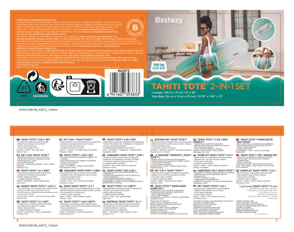 Profitez pleinement de l’été avec le set BESTWAY TAHITI 2‑en‑1 – un matelas gonflable confortable avec poignées robustes et un grand sac de plage au design assorti. Sa structure à boudins I‑beam, son gonflage rapide via une seule chambre à air et sa capacité de charge jusqu’à 100 kg en font un choix idéal pour la piscine, le lac ou la mer.