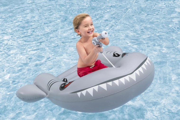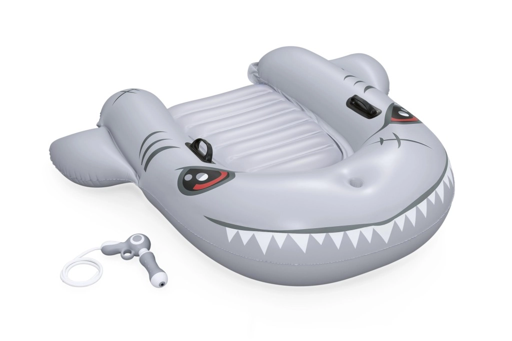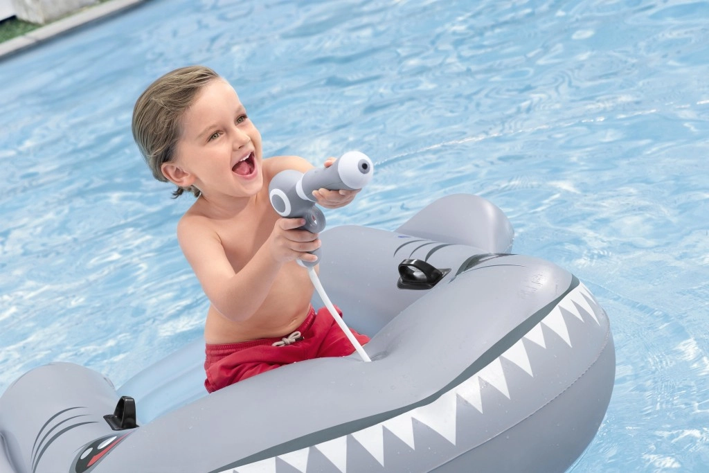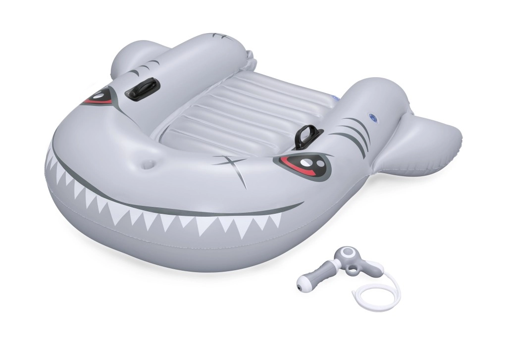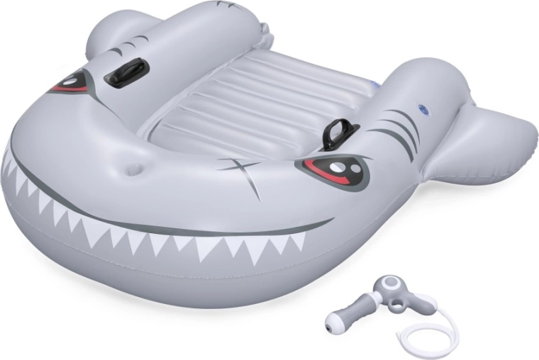 Profitez pleinement de l’été avec cette embarcation gonflable en forme de requin de 160 × 115 cm, idéale pour les enfants dès 3 ans. Elle offre des poignées robustes pour une prise sûre, une zone d’assise confortable avec soutien et un canon/pistolet à eau relié par un tuyau pour des batailles aquatiques sans fin. Grâce au PVC résistant, à la surface lisse et à une charge maximale de 45 kg, c’est un excellent choix pour un amusement aquatique sûr et ludique.