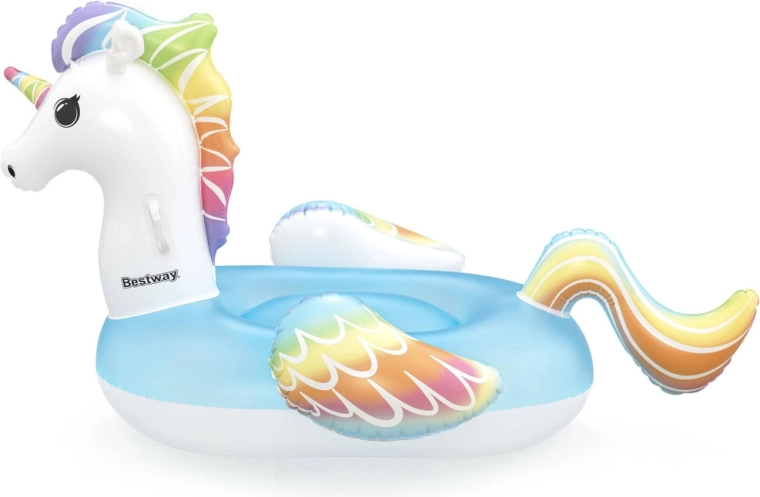 La licorne gonflable Bestway aux couleurs vives, avec ailes et crinière arc-en-ciel, est un choix parfait pour les plaisirs aquatiques estivaux. Grâce à sa structure stable et à ses poignées pratiques, les enfants profitent d’une glisse confortable et de jeux plus sûrs à la surface de l’eau.