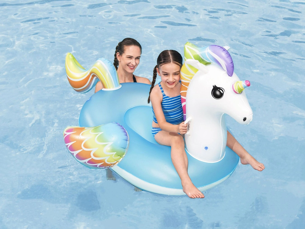 Adorable bouée gonflable en forme de licorne de la marque Bestway, parfaite pour séduire enfants et parents. Elle offre un siège spacieux, 2 poignées solides pour une tenue sûre, des valves de sécurité et un vinyle testé de 0,22 mm résistant. Idéale pour la piscine, le lac et la mer pour s’amuser et se détendre.