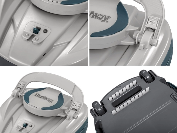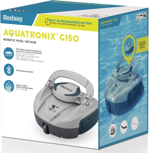L’aspirateur robot BESTWAY AquaTronix G150 offre un entretien confortable et efficace grâce à un fonctionnement entièrement sans câble. Des capteurs d’eau intelligents et des buses directionnelles garantissent des déplacements fiables sur le fond, avec mise en marche automatique à l’immersion et arrêt à la sortie de l’eau. Le grand panier de filtration de 2,0 l se retire et se vide en quelques secondes.