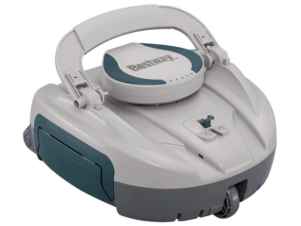 Avec une seule charge, l’appareil assure jusqu’à 60 minutes de nettoyage, la charge complète prenant environ 3,5 à 6 heures. Grâce aux poignées de transport, la manipulation est simple et sûre. L’appareil est conçu pour les piscines à fond plat (non adapté aux parois en acier).
