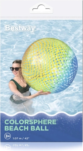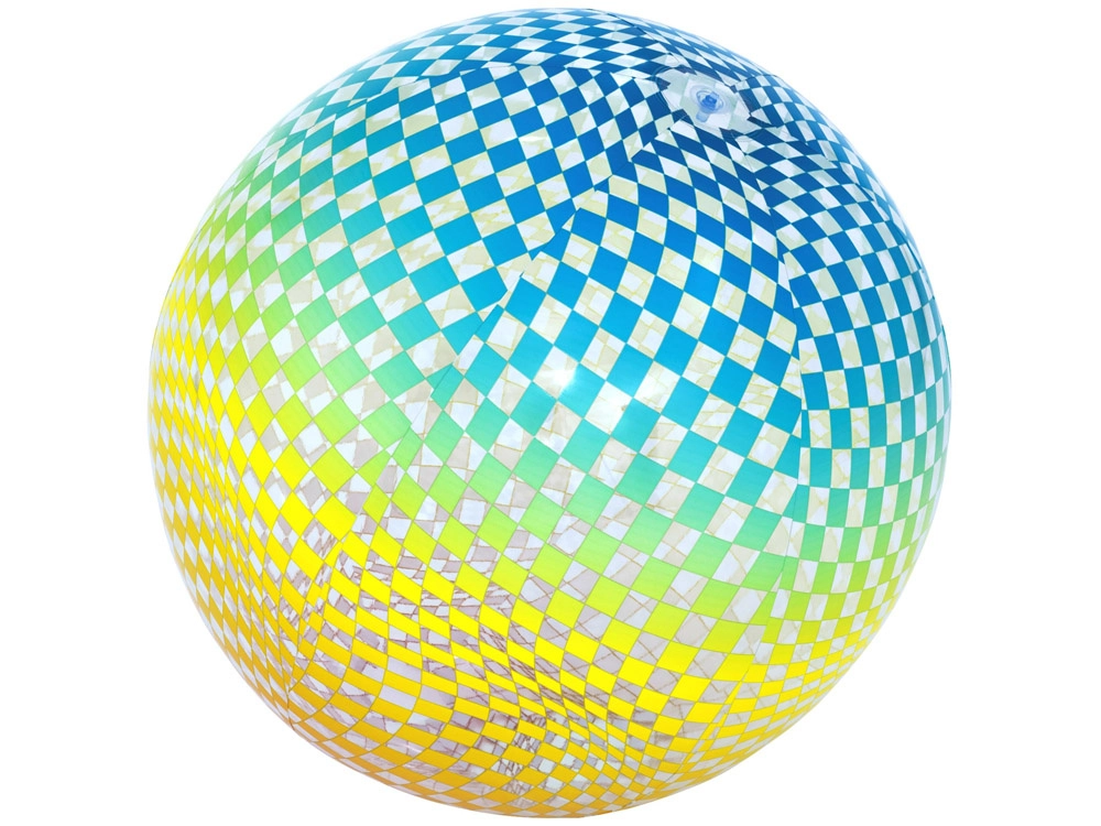 Le grand ballon de plage gonflable BESTWAY ColorSphere de 107 cm de diamètre apporte un divertissement haut en couleur à la piscine comme à la plage. Grâce à son vinyle léger, son gonflage facile et sa structure résistante, il est idéal pour les enfants dès 3 ans et les adultes. Le motif à carreaux très visible attire encore plus l’attention et invite aux jeux en commun dans l’eau comme sur la terre ferme.