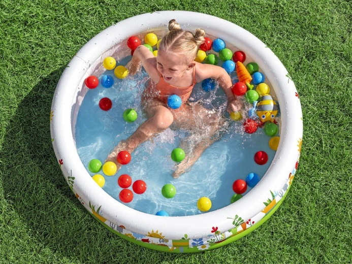 Profitez d’un jeu toute l’année – à la maison avec des balles ou dehors avec de l’eau. Le faible volume est idéal pour les premières découvertes aquatiques et un rafraîchissement en toute sécurité.