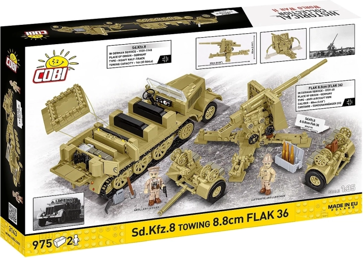 - Set authentique 2 en 1 : 8,8 cm Flak 36 sur remorque + tracteur semi-chenillé Sd.Kfz. 8