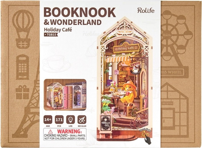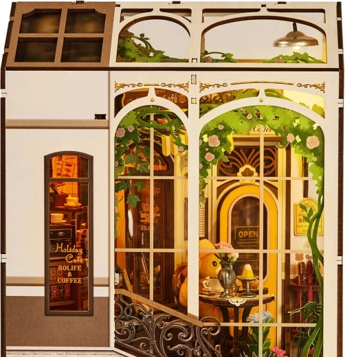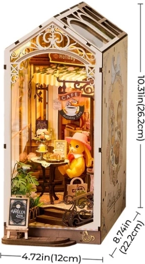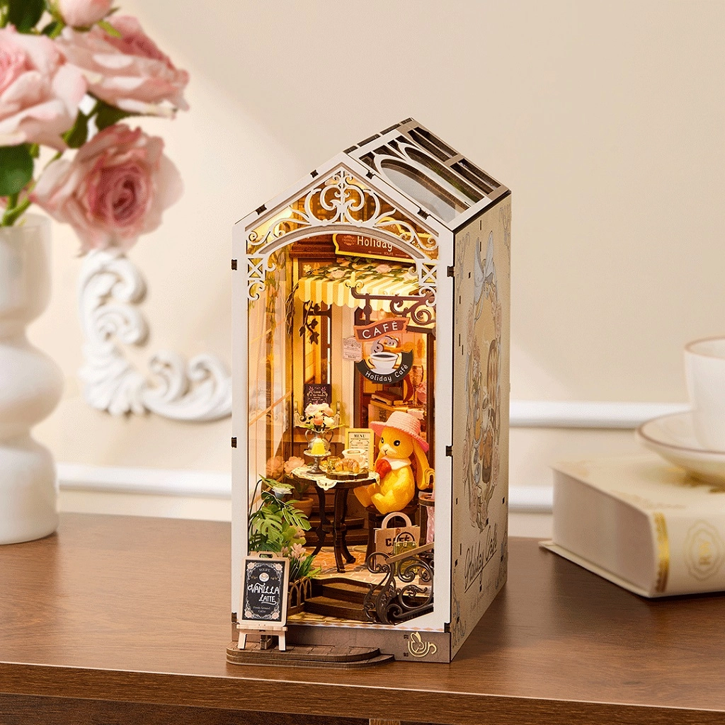 Cette miniature finement réalisée apporte l’ambiance d’un café de vacances cosy directement dans votre bibliothèque. Sa structure ouverte avec larges fenêtres latérales, ses accessoires réalistes et le rétroéclairage LED chaleureux transforment votre étagère en un petit monde plein de calme et de nostalgie. Le modèle fait également un excellent serre-livres stable et une décoration élégante pour bureau ou étagère.