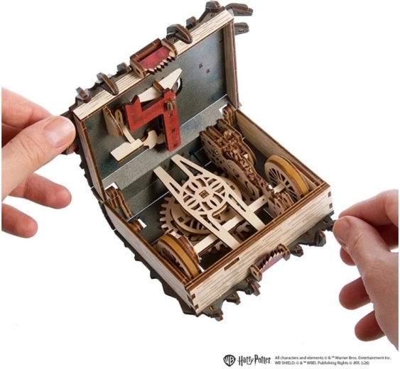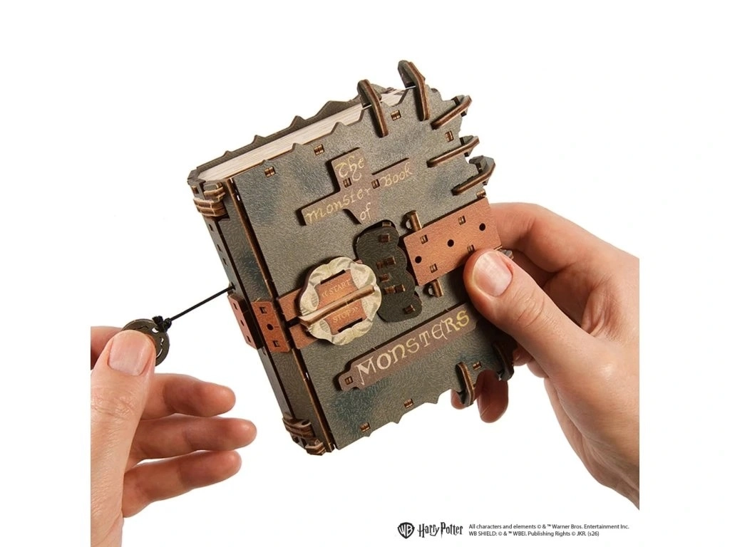 Découvrez un modèle enchanteur pour les fans de HARRY POTTER – le puzzle 3D en bois UGEARS inspiré du Monster Book of Monsters. Une fois assemblé, le livre s’anime réellement : grâce à une corde de traction, il se déplace sur une surface lisse, ouvre et ferme ses « dents » et ses yeux jaillissent lors de l’activation du mécanisme. Les pièces sont découpées au laser avec précision et s’assemblent sans colle, pour créer une décoration authentique et mobile ainsi qu’un jouet technique ingénieux qui stimule la pensée logique.