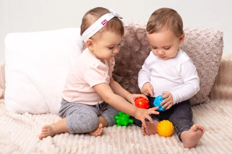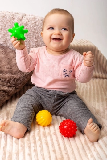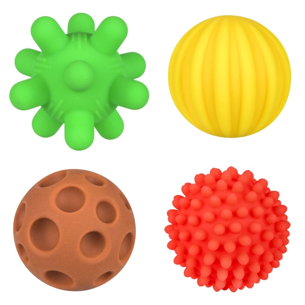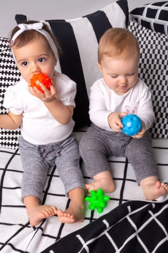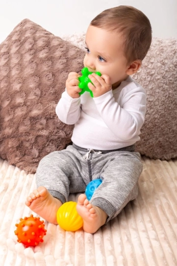 Chaque balle propose une surface différente pour stimuler le toucher, masser les paumes et entraîner la préhension – idéal pour développer la motricité fine.