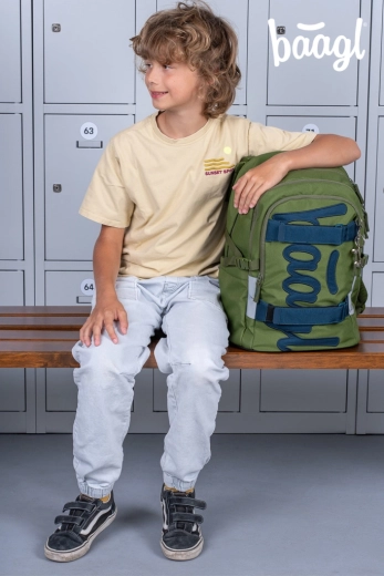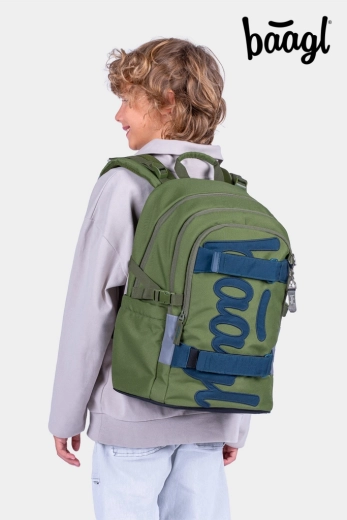 Le sac à dos scolaire BAAGL Skate Olive GRS, léger et robuste, est idéal pour les élèves à partir de la 3e année. Il offre un dos anatomiquement profilé, 3 compartiments spacieux, une poche rembourrée pour ordinateur portable 15", des bretelles pour fixer un skateboard et de nombreux éléments réfléchissants pour la sécurité. Fabriqué en matière recyclée et déperlante avec des fermetures éclair YKK de qualité.