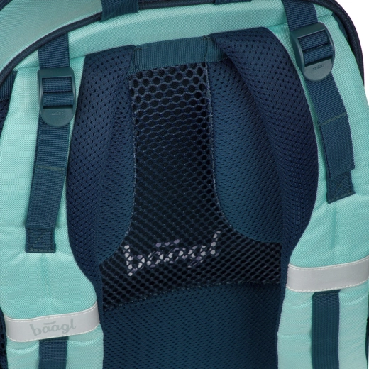 BAAGL Skate Petrol GRS allie design moderne, ergonomie et fabrication durable. Le dos anatomique avec renfort lombaire et rembourrage respirant assure un confort tout au long de la journée. Grâce aux sangles de compression entièrement réglables, le sac s’adapte parfaitement à la morphologie et stabilise la charge.
